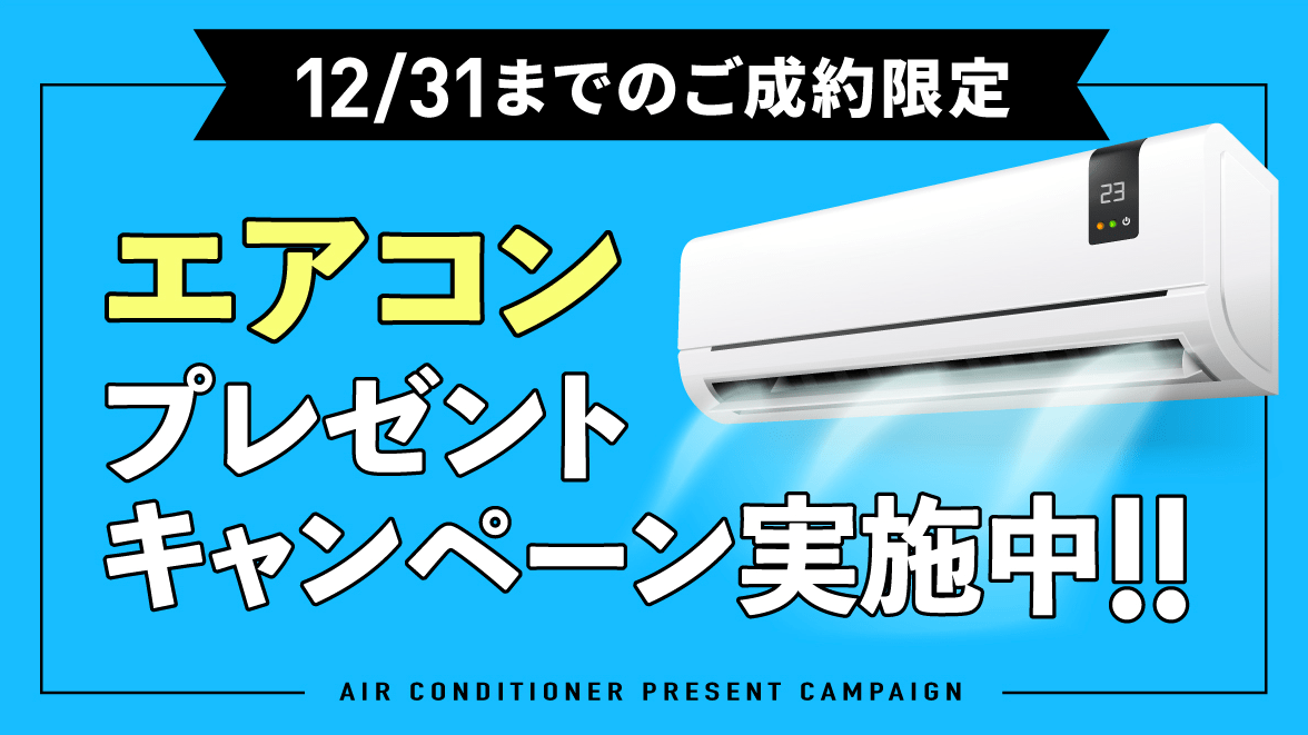 日頃の感謝を込めまして、期間限定の特別なキャンペーンを実施いたします。 トレーラーハウスでの快適な暮らしを応援するため、期間中にトレーラーハウスをご成約いただいたお客様全員に「エアコン1台」をプレゼント!
