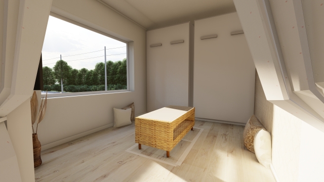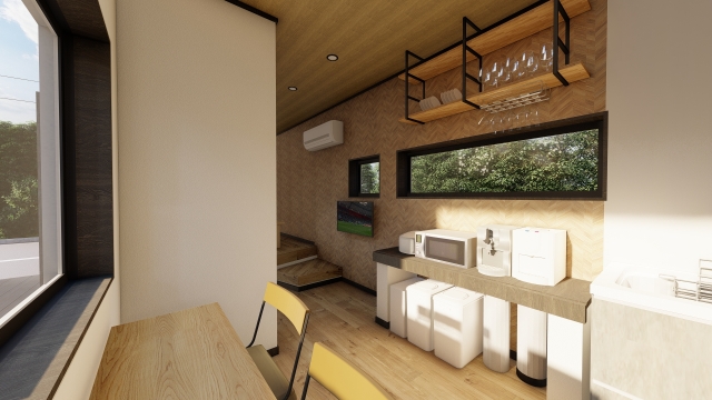 トレーラーハウスによっては、ロフトを設置できたり、可動式の間仕切りを付けたりすることも可能です。このほか、一棟で完結させるためには、フレキシブル家具を導入するといった工夫も一案です。
