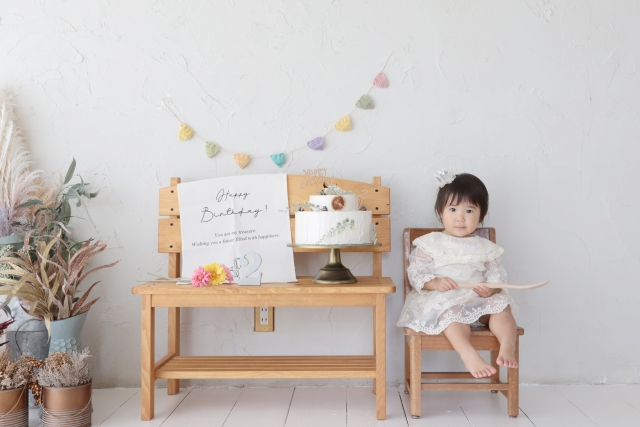 七五三や誕生日、入園・入学など、子どもの節目に特化した記念撮影を行う形態です。スタジオの内装や衣装に、子どもの世界観に合ったデザインと明るい色合いを取り入れ、特別な瞬間を演出します。