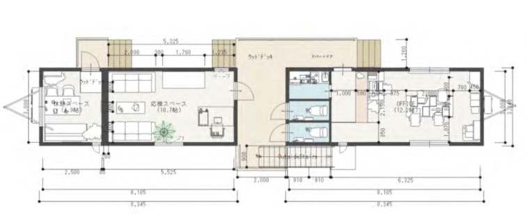 また、外壁には企業カラーのブルーとゴールドのガルバリウムを貼り分けしオリジナリティのある外観に仕上げました。