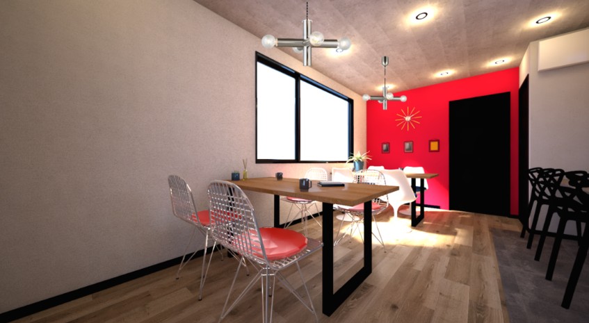 「オーナー様こだわりの赤を基調とした内装デザイン」