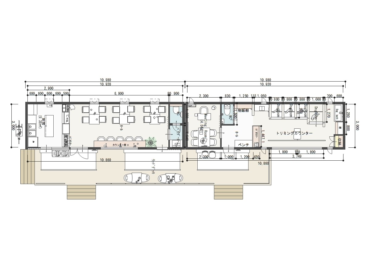 - ドッグラン/トリミングスペース/お打ち合わせ室/厨房/カフェフォトスペース/トイレ